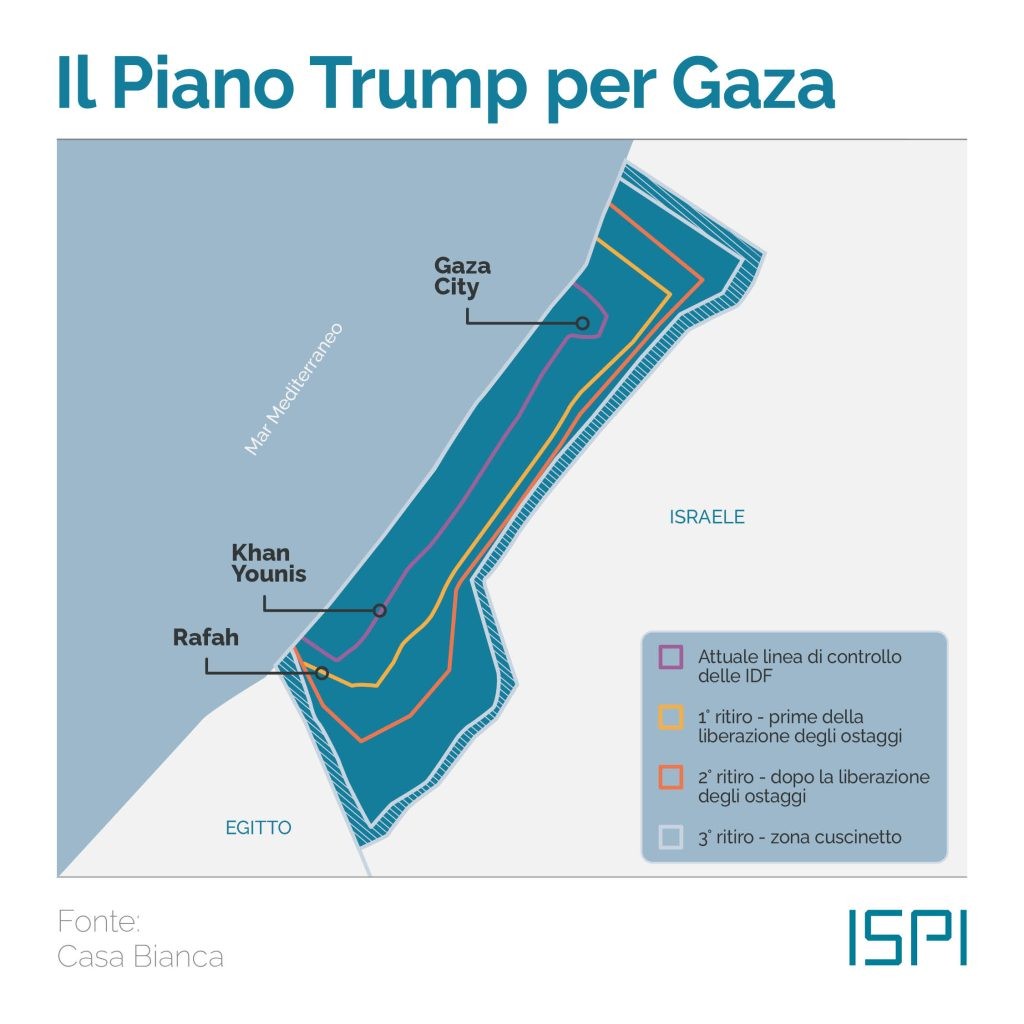 Il piano di Trump prevede che Hamas non abbia alcun ruolo nella Striscia e propone che venga temporaneamente governata da un comitato di tecnici palestinesi supervisionati da un ‘Board of Peace’ di cui farebbero parte lui e l’ex premier britannico Tony Blair, prima di essere consegnata all’Autorità Nazionale Palestinese.